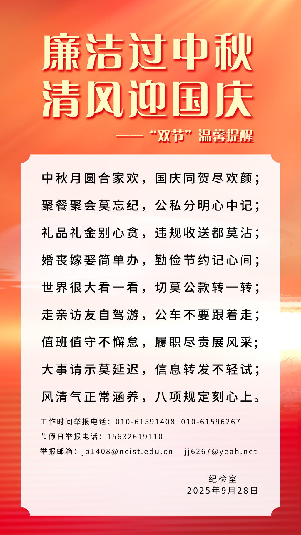 廉洁过中秋 清风迎国庆——“双节”温馨提醒